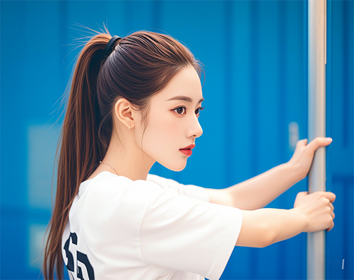 step 5:调整整理一下马尾,如果后面散落发丝过多,向上扭转用发卡往上固定,就这样完成好看的高马尾造型啦。