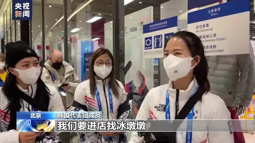 韩国代表团成员:我们要进店找“冰墩墩”,还有冬奥特许配饰等。“冰墩墩”太可爱了 。