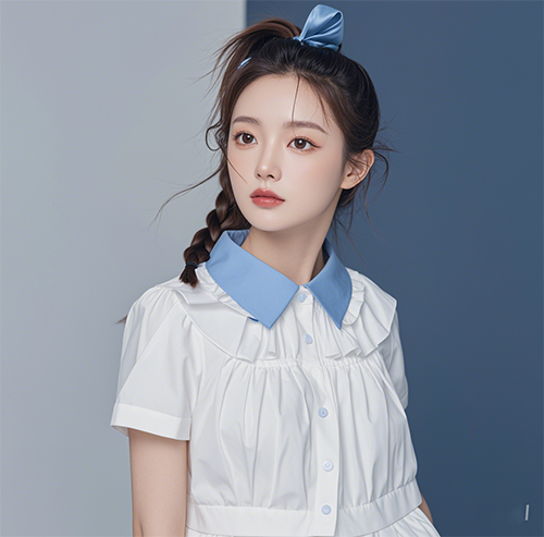 扎得过低就会有种路边大妈的即视感,一下老了十多岁。长头发的妹子不建议扎低马尾,落肩发、短发推荐低马尾,显得十分俏皮。