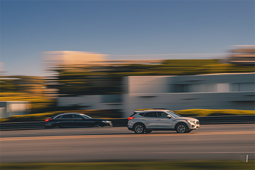 要拍摄那种汽车主体是清晰,背景是拉丝状虚化的追随摄影的效果,我们可以使用1/15-1/60 时这样较慢的快门速度。