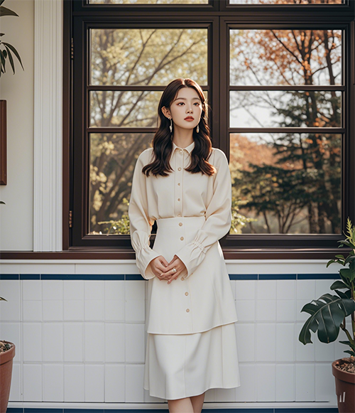 肚子明显的话,保存设计会在肚子里收缩,所以会凸显我们的肚子,而宽松随意的下摆会完美覆盖,可以搭配女生的美感。