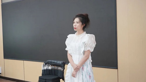 为了让大家看的更清晰,小花老师演示整张脸的半边妆面,分别从底妆、眼妆、眉形、唇妆、腮红这几点来刻画整个妆面。化妆前后的步骤正确与否会影响最终的妆容效果,课堂上,小花老师按照顺序给大家演示妆前护肤与化妆操作,为学员们演示正确的化妆步骤。
