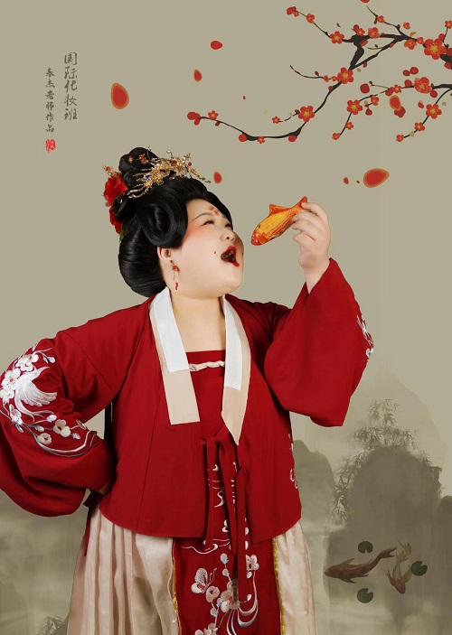 双颊两朵胭脂艳若桃花,营造娇羞迷蒙的美感转