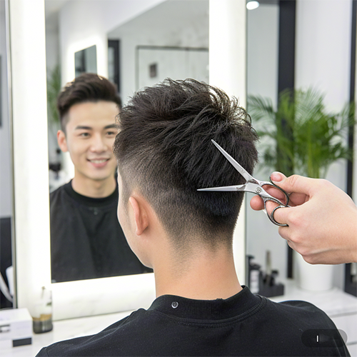 3、顶部头发向上垂直形分片水平行修剪,则形成层次比较适中;如向上修剪则形成低层次,向下修剪则形成高层次。侧部头发向侧面垂直的分片剪,按90°垂直的修剪,层次比较适中;按 45°向上修剪,则形成高层次;按45°向斜剪,则层次低或齐叠层次。