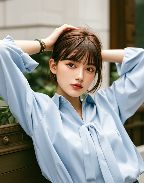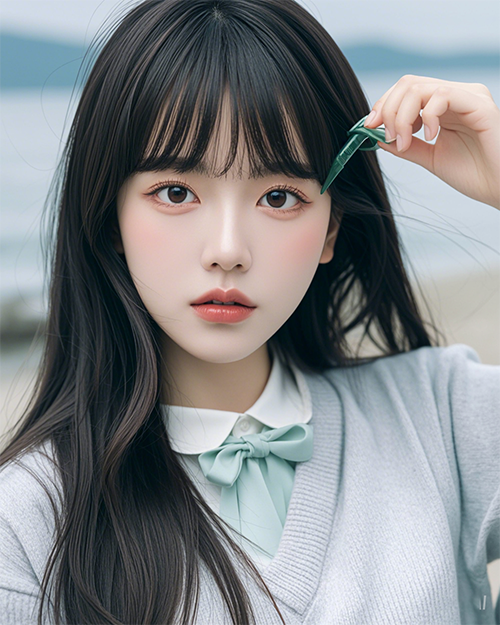 八字空气刘海的秘诀就在于刘海的长度!刚好落在眼睛上方一点点的位置,瞬间嫩三岁!减龄效果满分~