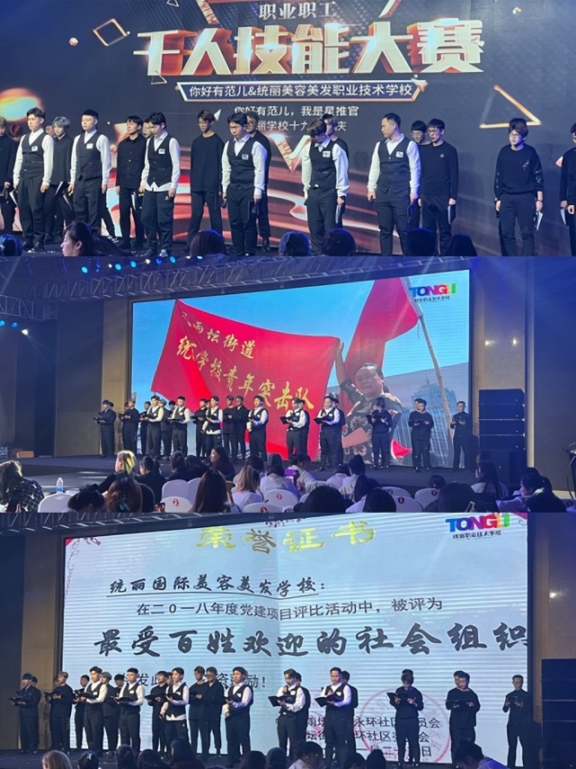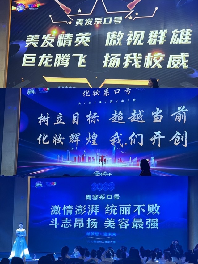 虽说学美发的男生居多,但是正是这些青春活力的小伙子们给学校增添了朝气蓬勃的青春气息。他们带来的诗朗诵《唱响奋进曲,谱写统丽新篇章》更是听得现场热血澎湃。