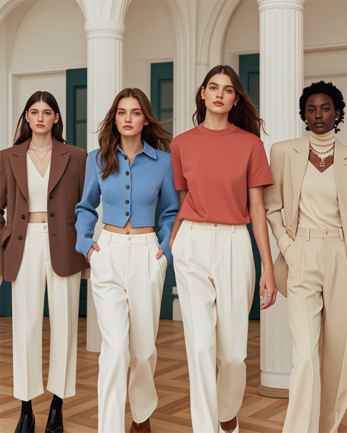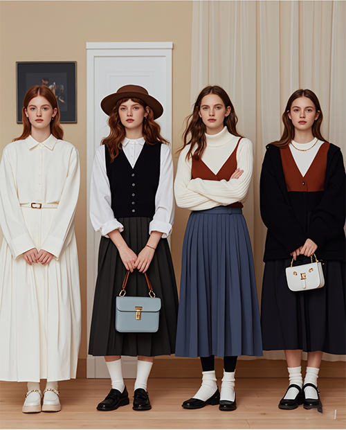 这时候博主就会比如加入褶皱、荷叶边、飘带这类甜美元素,来平衡基本款的沉稳,让穿搭既有细节,又不会太花哨夸张。