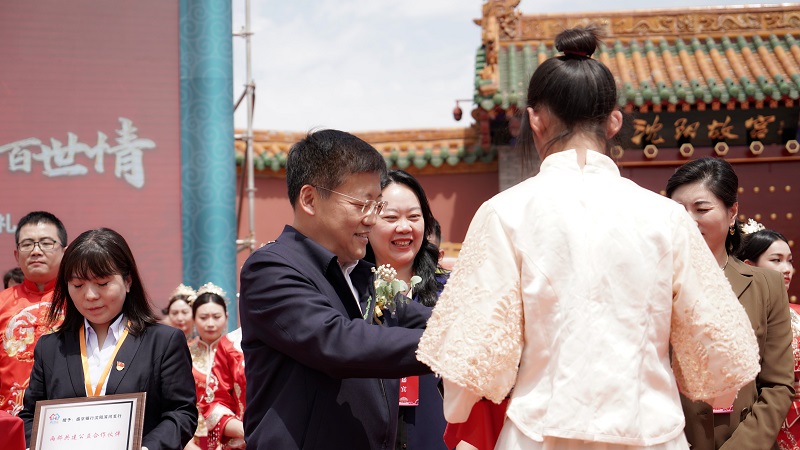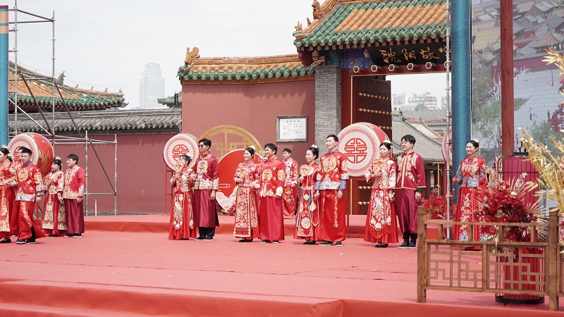 中国红贯穿整场,新人们身着中式喜福,依次完成了三拜大礼、交换信物、饮合卺酒、诵读婚书,在亲友的见证和祝福下为爱携手,喜结良缘。