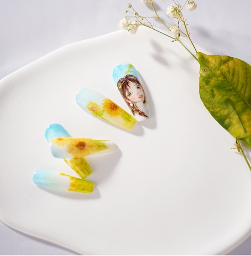 先用剪刀剪去甲片,剪到跟真甲一样的长度,之后轻压甲片前端,用刚推或者木棒轻轻撬开甲片根部,漏出缝隙。沈阳美甲学校建议大家拿刷子或者棉签粘一些解胶剂抹在缝隙里,等几秒钟后胶水融化,就可以再抹解胶剂进去卸除更深处的胶水,直到轻轻揭开甲片啦,立刻擦掉或者磨掉甲面残余,最后可以再抛光和上营养油哦如果没有解胶剂,可以试试用尽量热的热水泡十几分钟,但是不一定能够成功,得看具体的胶水。或者直接用卸甲水再次包扎渗入甲面几分钟也很快卸掉的。