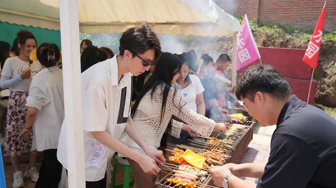 活动完筋疲力尽怎么办,唯有烤串来相伴,以班级为单位的自助烤串整起来!你别说你还真别说学生们烤起串来还真有样儿!