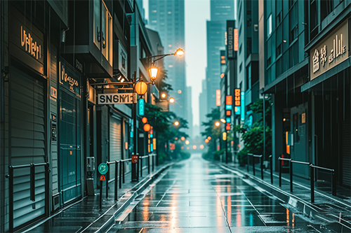 雨后路面会形成水滩,宛如一面镜子把城市倒映出来,此时仿佛另一个神秘的世界,拍下这个场景,照片非常有趣味。