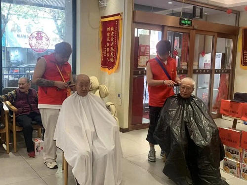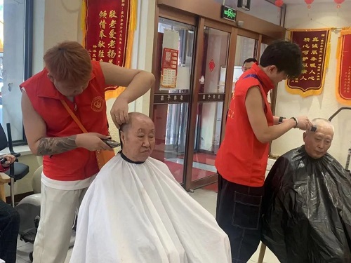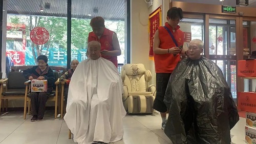 整个活动现场温馨而有序,学生志愿者细心地为老人围上围布,并不时地与他们沟通,耐心询问老人家对发型的要求,耐心细致地为每一位老人剪发。不一会儿,一位位老人面容焕然一新,脸上纷纷露出满意的笑容。其他的工作人员为等待的老人们安排座位,并与他们亲切交谈。“孩子们不仅为我剪发,还和我聊天,还关心我的生活,让我感觉很温暖,很有爱。”一个大爷剪完头发后高兴地说道。