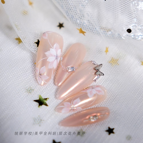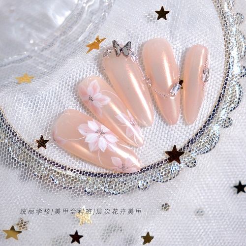 统丽学校的美甲全科班,始终致力于培养学员们的美甲技艺与审美眼光。这款纯欲温柔氛围感的双层花卉美甲,正是学员们用心诠释美丽的最好证明。无论是从设计、色彩搭配还是技艺表现上,都展现出了极高的专业水准,让人赞叹不已。