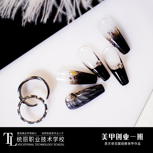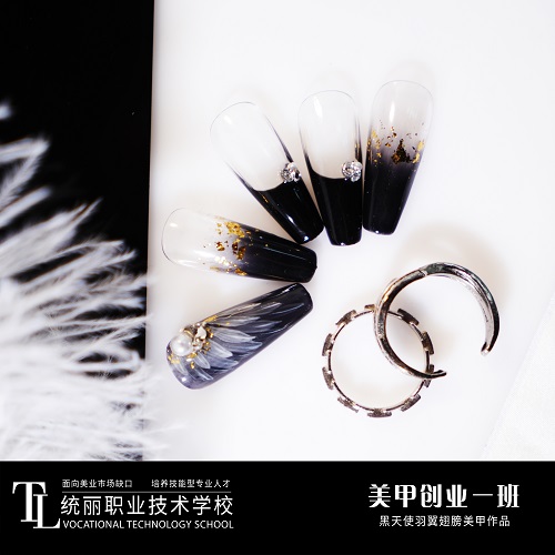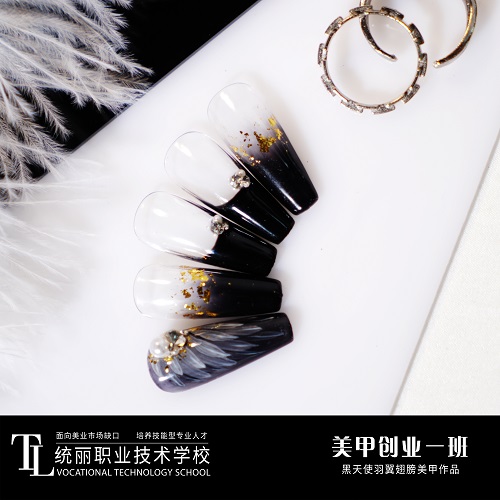 黑天使羽翼,宛如夜空中的星辰,闪烁着神秘而诱人的光芒。将它运用在指尖就是充满魅力的美甲艺术,如果你喜欢美甲,就从这一款美甲开始吧!统丽沈阳美甲学校和大家分享教程。