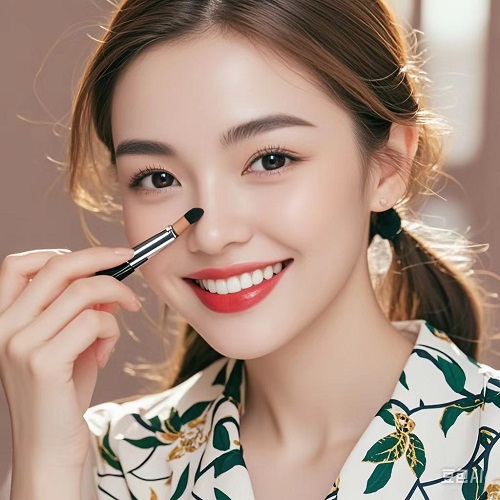 首先,使用一把细小的遮瑕刷,蘸取少量与肤色相近或稍浅的遮瑕膏,轻轻地点涂在鼻翼两侧的鼻沟处。这里需要注意的是,遮瑕膏的选择应尽量轻薄透气,避免产生厚重感。通过轻轻拍打的方式,将遮瑕膏与周围肤色融合,减少因阴影造成的暗沉感,使鼻子看起来更加挺拔。