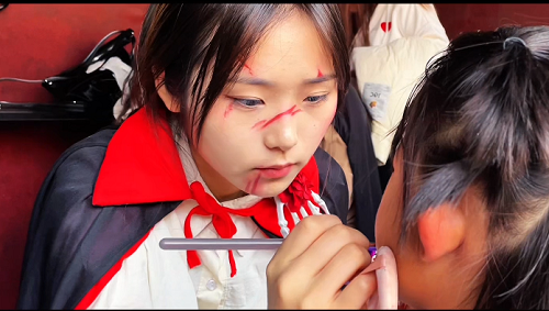 刘芯帆老师很专业,也特别有激情。她就像一盏很亮的灯,给学生指引着路呢。她特别喜欢化妆艺术,对学生们的期望也可高了。她认真地组织大家参加方特万圣节化妆实习。实习前,她又是动员学生,又是仔细地分任务,什么事儿都考虑到了,就是想让学生们在这个特别的时候好好锻炼,快点成长。