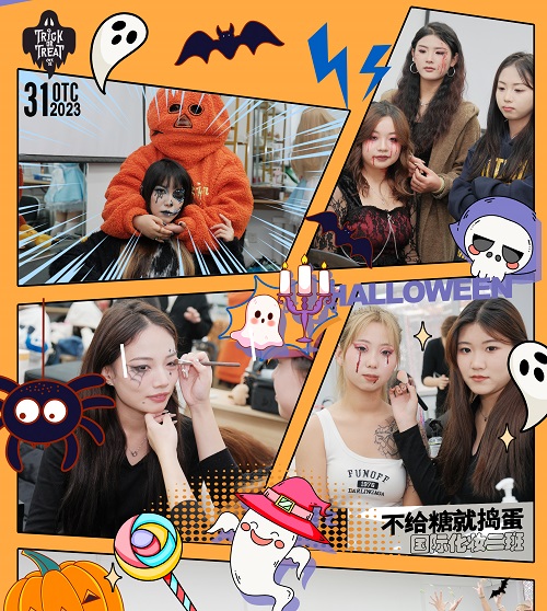 除了令人惊艳的化妆展示,班会上还开展了一系列丰富多彩的有趣活动。唱歌环节,同学们一展歌喉,悠扬的歌声回荡在教室中;玩游戏时,大家热情高涨,积极参与其中,阵阵笑声不绝于耳。大家共同分享着这些美好的瞬间,深深地沉浸在节日带来的欢乐氛围之中。