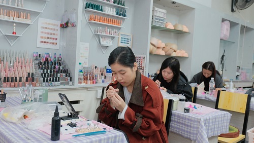 学校注重理论与实践相结合的教学方式。在课堂上,老师会详细讲解指甲的保养方法,以及不同甲型、甲质所需的特殊护理技巧。学员们通过模拟操作,逐步掌握这些实用技能。同时,学校还设有美甲产品展示区,让学员们能够亲手触摸和感受各种产品的质地与效果,从而更加深入地了解产品特性。