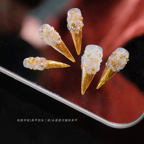 金色的光辉象征着无尽的财富与希望,而碎钻则如同追梦路上的点点星光,引领着每一个爱美之人向着美好前行。它不仅是一种指尖的艺术,更是对生活品质的一种追求和表达。