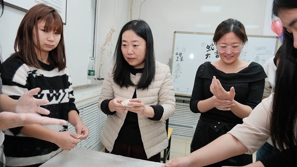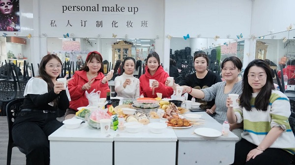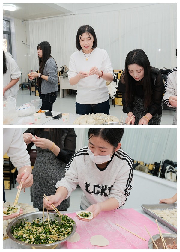 不光是教室布置,就连互动游戏环节同样热火朝天,将欢乐的氛围推向了新的高潮。猜谜语游戏更是充满了趣味与惊喜。彩色的纸条上写满了各式各样的谜语,悬挂在校园的长廊下,随风飘动,吸引着师生们驻足思考。有诙谐幽默的字谜,让人绞尽脑汁;有妙趣横生的生活谜语,引得大家脑洞大开;还有与专业相关的美妆谜语,让同学们在熟悉领域大显身手。大家或是独自沉思,或是三两成群热烈讨论,每当谜底揭晓,欢呼声与恍然大悟的笑声便回荡在校园上空。师生齐心,一起包饺子