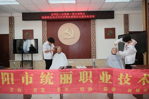 沈河区人社局第一党支部联合统丽职业技术学校开展免费理发志愿服务活动
