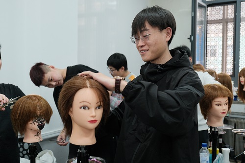 课程是以理论+实操+实践的教学方式,一楼设有美发实践大厅,学员经过多次的实操模拟,就可以真实的接触到顾客进行实践。从洗发、护理到剪发、造型,逐步熟悉完整服务流程。这种"学中做、做中学"的模式,让学员在毕业时就能达到行业准从业者的水平。许多优秀学员甚至在结业前就通过学校推荐获得了工作机会。
