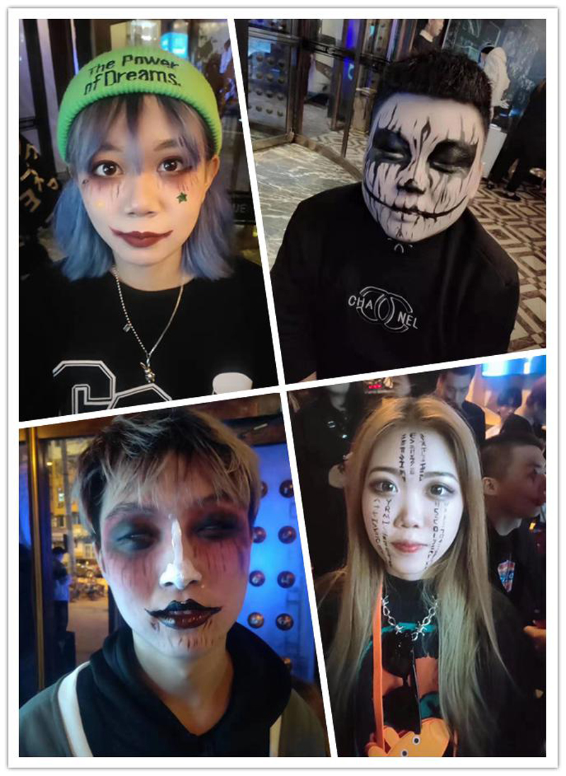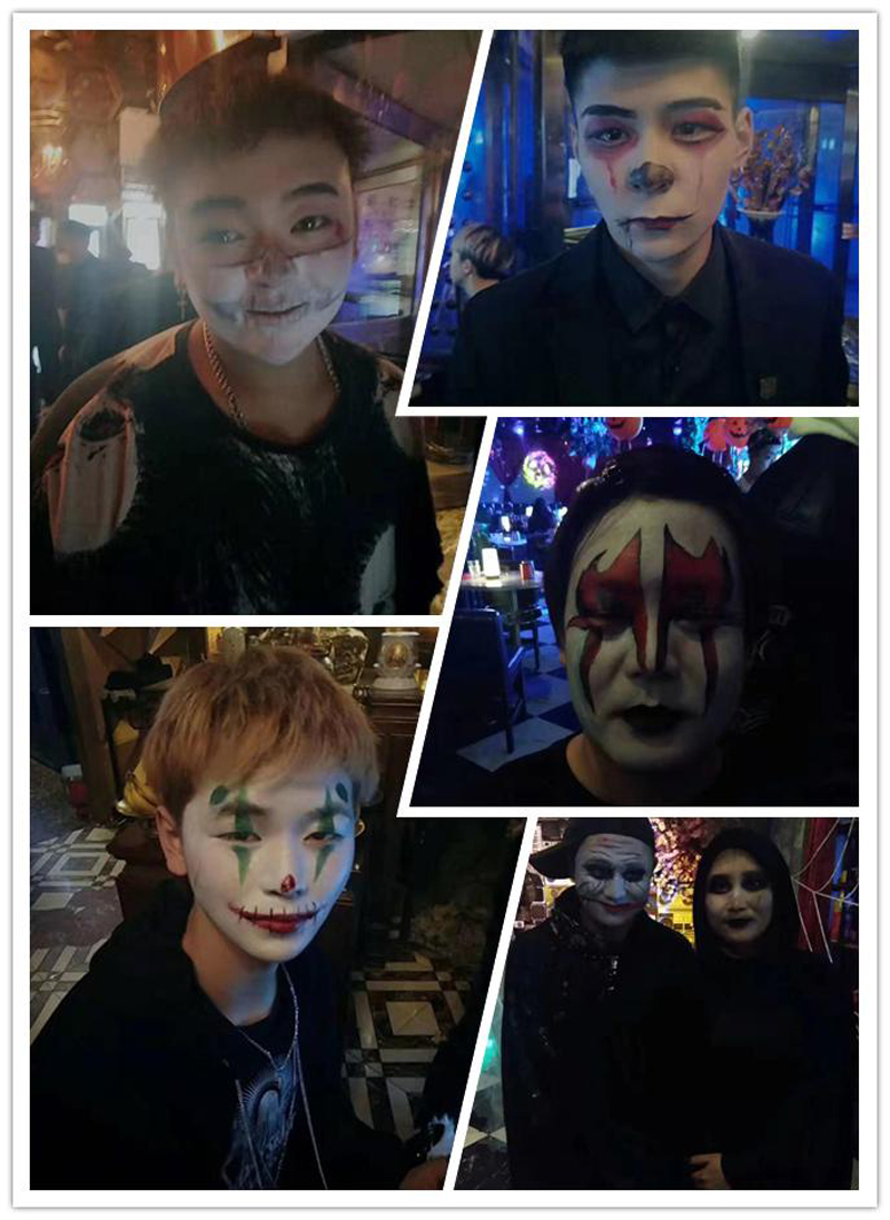 时尚造型班精湛的化妆造型技术,给此次狂欢派对平添无数亮点,是活动得以顺利举行、众人得以尽情狂欢的最大功臣。“妆面简直太逼真了”、“从没有参加过这么刺激的万圣派对”、“真的见了鬼啦”...每个人都情不自禁地为统丽人点赞!