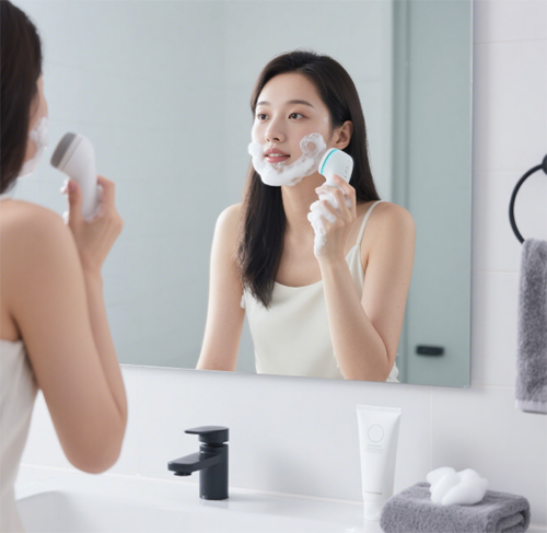 夏日皮肤油脂和汗液分泌旺盛,容易堵塞毛孔。每天早晚使用温和的氨基酸洗面奶清洁面部即可,过度清洁会破坏皮肤屏障,导致皮肤干燥、敏感。洁面时,取适量洗面奶在掌心揉搓出泡沫,以打圈的方式轻轻按摩面部T区、鼻翼两侧、下巴等油脂分泌较多的部位,然后用清水彻底冲洗干净。若当天使用了防水型防晒霜或浓妆,需先用卸妆产品卸妆,再进行洁面。