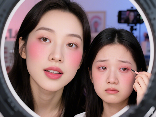 “粉底+腮红同涂”只会有两种效果要么全脸红、要么腮红被粉底盖住,而且你很难把粉底和腮红完全拍匀;博主看似“自然”的效果,实际是靠补妆、美颜滤镜。现在腮红画法越传越偏,从眼周、唇周画到全脸,这种“瞎教”只会让新手更焦虑,抓不住化妆重点。