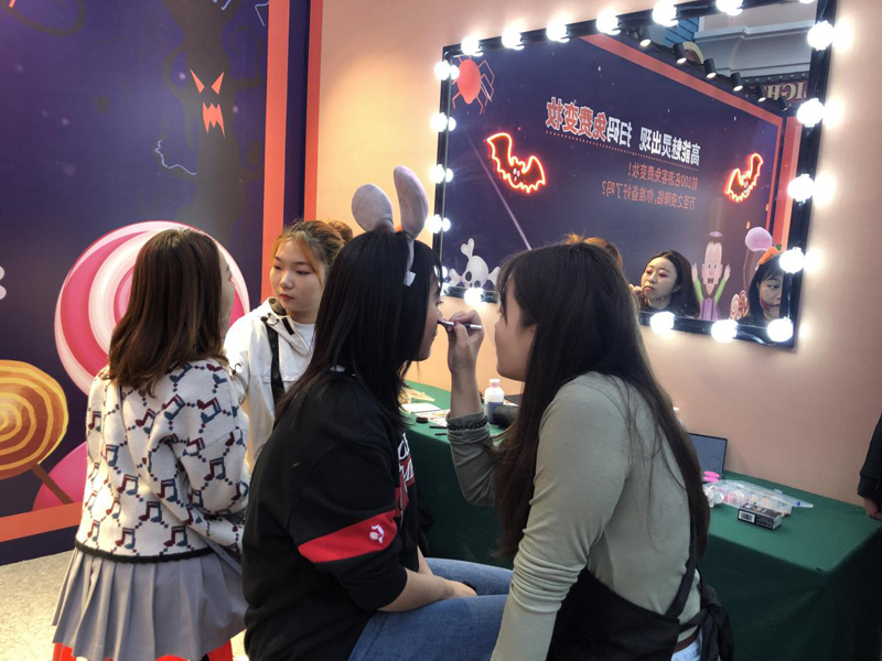 在李老师的统筹和指导下,国际化妆班学员克服种种困难,出色地展现出了化妆、特效造型、发式、服装、配饰等方面的精湛技艺,给数百名游客提供精美妆面,赢得主办方和男女老少的高度评价和热烈欢迎,成为活动中最为靓丽的一抹色彩!