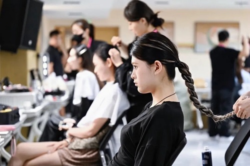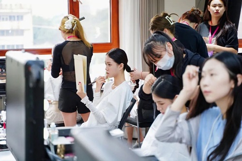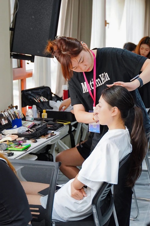在这场备受瞩目的时尚盛事中,她们没有丝毫怯场。面对紧张的秀场节奏、多元的妆容需求,她们凭借在统丽学到的扎实技能,从容不迫地在模特脸上勾勒出精致妆容。每一笔色彩的晕染,每一处细节的修饰,都凝聚着平日课堂上的汗水与积累,更展现出超越同龄人的专业素养。