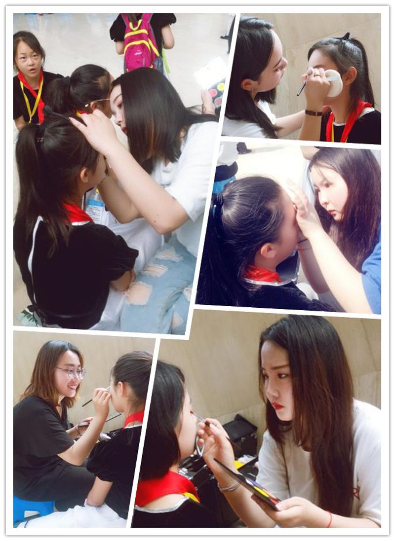 为了不影响此次活动的顺利举行,时尚造型班师生冒着清晨零度以下的寒冷,甚至来不及吃早餐,一大早五点多便集体赶往南风大剧院。在李小美老师的协调和安排下,统丽学员们有条不紊地开展助妆,凭借精湛的技艺、热情的态度,加上耐心和细心,努力克服了参演人数众多、气温低、妆面难度大等诸多现实困难,为参加演出的老人们提供了美业服务。