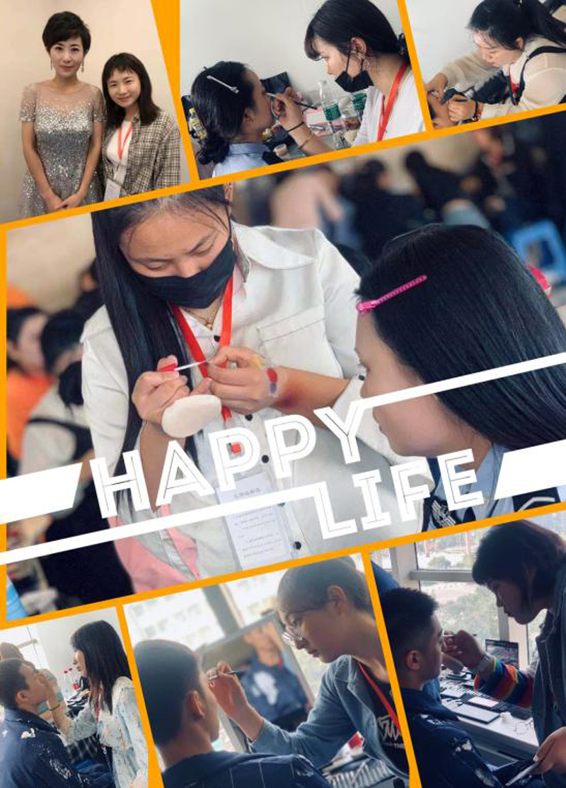 凭借着精湛的技艺、奉献精神和满满的正能量,国际化妆班师生克服了参演人数众多、妆面难度大要求高、助妆时间跨度长等现实困难,圆满的完成了此次助妆任务,受到了活动主委会和参演人员的一致好评和高度赞誉。当然,国际化妆班同样也是收获满满,除了通过这次助妆活动增长了见识、磨炼了意志和技艺、充实了思想,让自己得到了全方位的提升外,还得以与众多明星大腕近距离接触、合影留念,成功地追了一回星,羡煞他人。