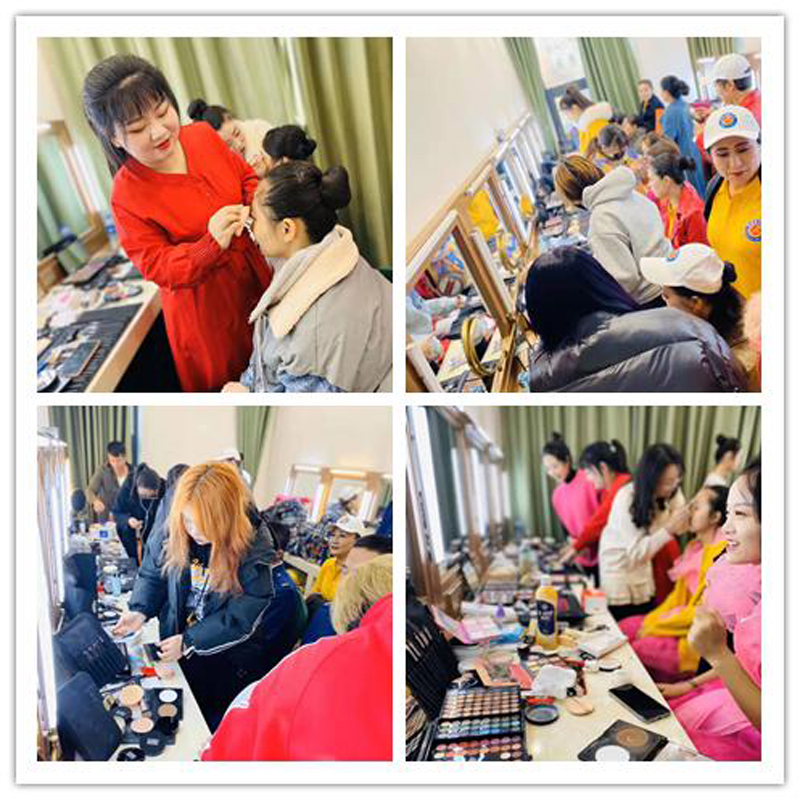 省市相关领导出席了活动,更有众多知名演艺明星、主持人参演,作为辽沈乃至东北地区规模最大,最有社会影响力和号召力的职业技能培训机构之一,统丽学校自然也不会缺席如此盛典。在李春杰老师的带领下,国际化妆班早早启程赶往辽宁大剧院,在后台有条不紊地为数百位演出人员、主持人、消防指战员提供了化妆、造型、发式、服装、配饰等方面的美业技术支持。