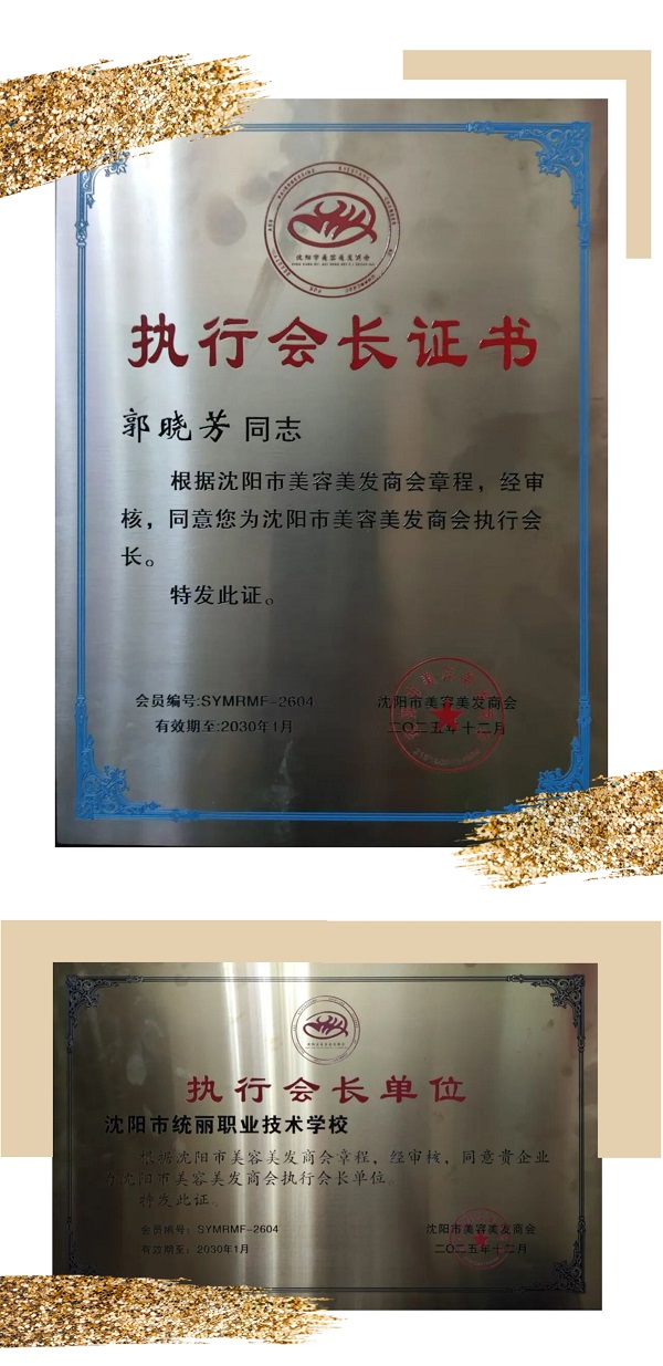 与此同时,统丽学校校长郭晓芳也凭借在美业教育领域的卓越成就与行业影响力,正式获颁“沈阳市美容美发商会执行会长”证书。这不仅是个人荣誉的象征,更意味着一份沉甸甸的责任。郭校长表示,将以这份荣誉为动力,积极履行执行会长职责,为推动沈阳美业教育的规范化发展、促进美业产业的升级迭代贡献更多力量。