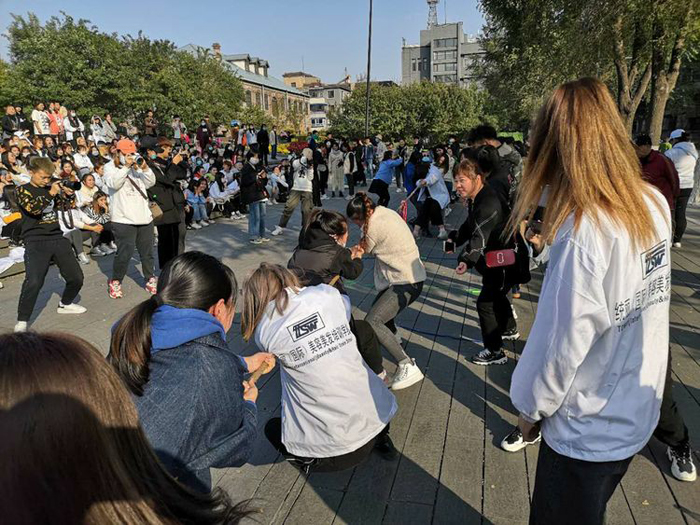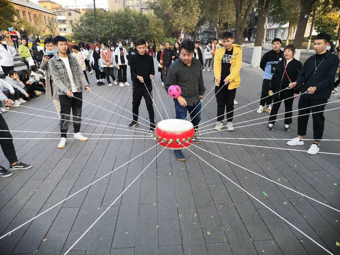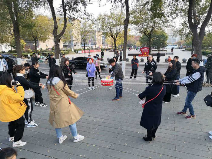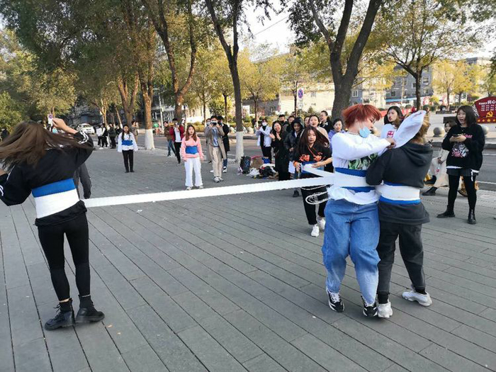 在穆鹏老师的宣布下,趣味运动会角逐开始。根据安排,此次运动会的比赛共有五个兼具竞技性、技巧性和趣味性的项目,对团队协作能力和个人身体素质都是比较强的考验。在如沸的助威呐喊和欢笑中,统丽学员以班级或专业为单位,先后进行了拔河、四人五足、转布条、呼啦圈接力和同心击鼓等比赛,无论场内参加比赛的,还是场外呐喊助威的,统丽师生无不神采飞扬、激情澎湃,周边驻足观看的男女老少,脸上也都洋溢着开心的笑容。