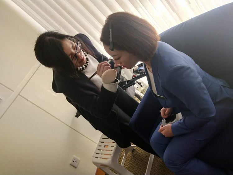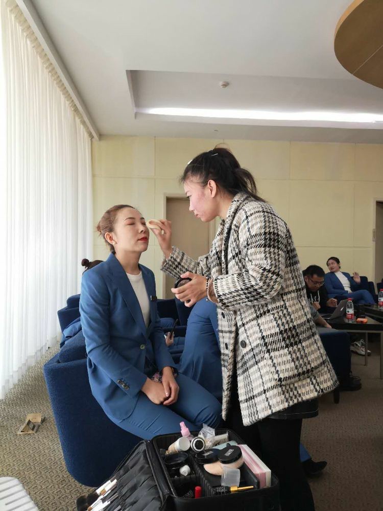 刘芯帆老师和她的私人订制班,便是统丽学校社会实践领域的骨干力量。10月27日,在刘老师的组织下,私人订制班数名精英学员前往某地产公司,为其在“友谊剧场”举办的团建以及优秀员工拍摄形象照活动提供助妆相关的美业技术支持和服务。