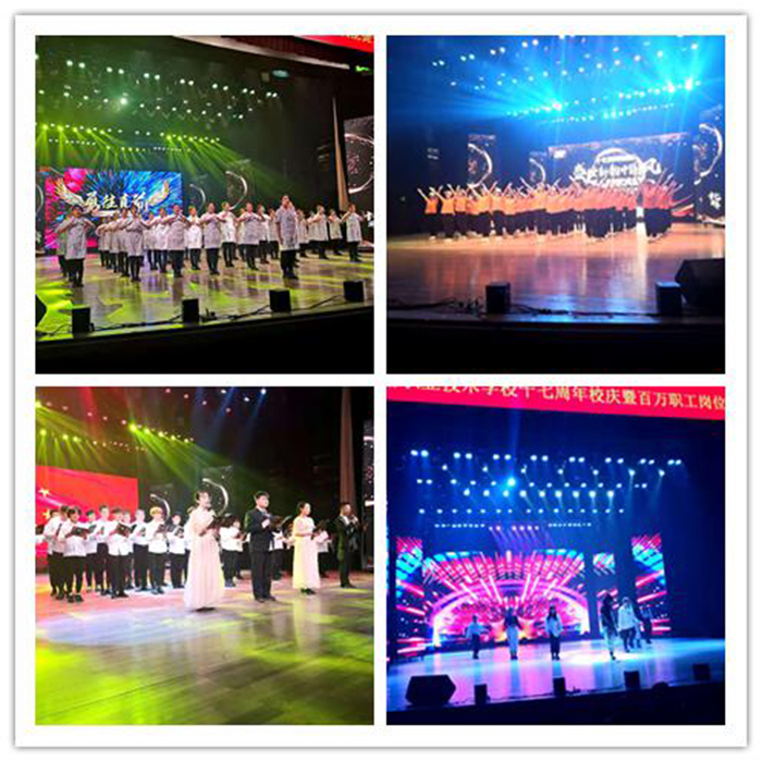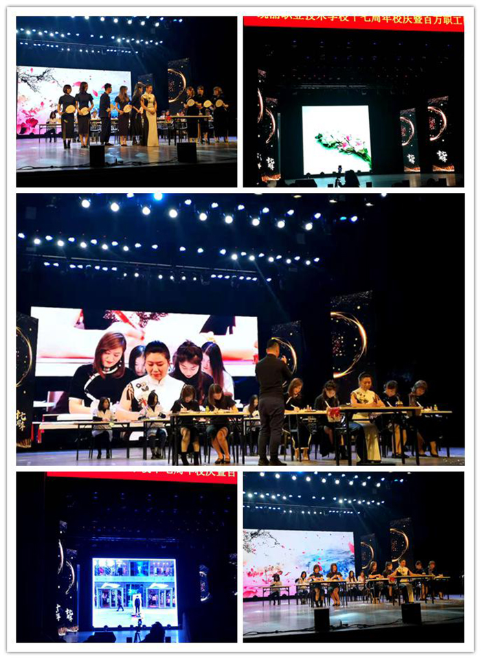 接下来到了精彩的团队展示环节。美容系学员用充满激情的手语舞《勇往无前》,表达了自己对梦想的向往和追逐梦想的决心;化妆系学员用另一段手语舞《怒放的生命》,诠释着对青春的赞美、对幸福的向往、对梦想的坚持;美发系则带来大型诗朗诵《我爱你,中国》,深情地赞美了党和国家,表达了对祖国母亲的无限热爱和衷心祝福;化妆系学员用激情舞蹈《无价之姐》表达着成为时代主角的决心和信心,同时也为庆典的竞赛环节拉开了序幕。