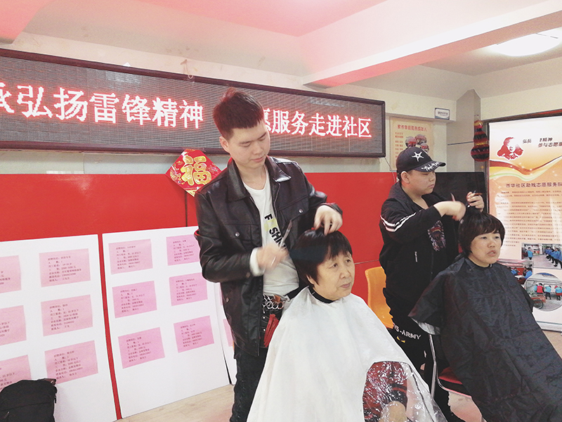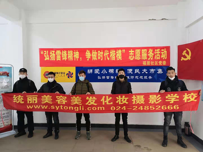 三月的沈城乍暖还寒。三月五日,正值第58个学雷锋纪念日之际,天气却似有意出了一道难题:凛冽的寒风,飘扬的雪花,遥远的路程,考验着统丽学校红十字雷锋志愿者团队的爱心和奉献精神。面对困难,统丽学校美发弟子班的刘鑫淼、郭嘉忱、王玉、袁鹏翔和陈均洲等五名学员,在近期大火的穆鹏的安排下,坚定地高举统丽学校“服务社会、造福百姓”的公益大旗,参加了福居社区党委组织的“弘扬雷锋精神,争做时代楷模”义剪活动,用实际行动为构建和谐社会、弘扬社会主义核心价值观、推动社会主义精神文明建设做出贡献,充分展示了统丽人的爱心和正能量。