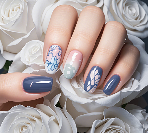 3.指甲喷漆,用喷墨机和特种喷漆,喷在指甲表面的各种图案效果。