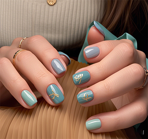 冷色系的指甲油,就是看上去给人的感觉是冷冷的感觉,也并不是特指的,像黄色,在不同的色彩搭配中的偏向也不一样,这里的搭配上是偏冷的,有时候是偏暖的。下面的美甲整体感觉是偏冷的。