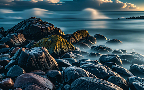 湿润的岩石能显示出色彩、质感和纹理,而干燥的石头大多是呈现暗黄色或焦黄色,不仅色彩单一,而且没有质感。这也是沈阳摄影培训学校老师常提示大家要注意的地方