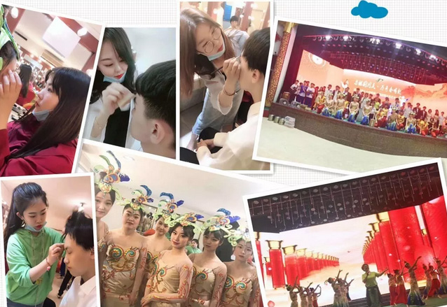 另一队时尚造型班学员,则参与了十七中学举办的“与祖国同庆,为青春歌唱”主题艺术节歌舞大赛。与上园小学的情况不同,这次助妆更多地考验了统丽人的专业技能,而且参演人数众多,造型多样,时尚造型班学员面临着不小的压力。同样的,技术过硬、态度热情的统丽人,又一次克服了种种困难,圆满地完成了助妆任务,用实际行动支持了十七中学的校园文化建设。