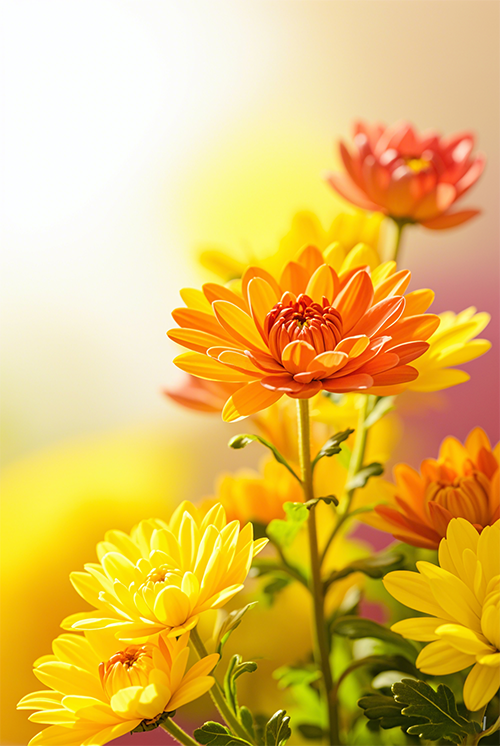 例如用黑或白或浅色的背景纸、KT板作背景,以获得想要的影调,也可以运用大光圈,选择其他同色菊花作为背景,虚实对比,突出主体。